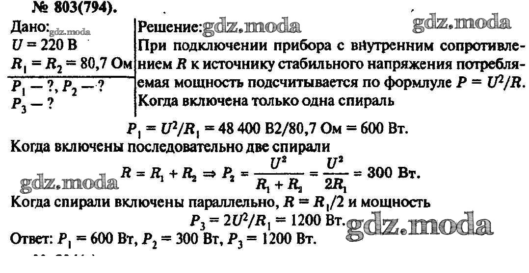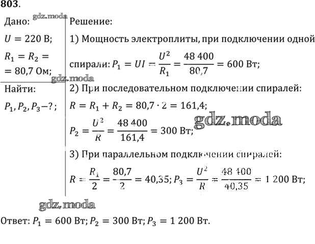 ОТВЕТ на задание № 803 Задачник по Физике 10-11 класс Рымкевич УМК
