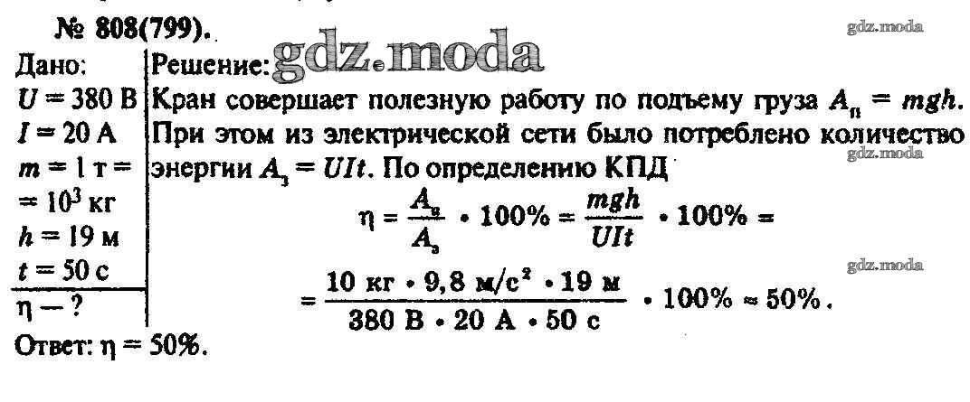 ОТВЕТ на задание № 808 Задачник по Физике 10-11 класс Рымкевич УМК