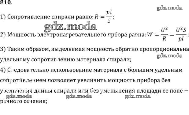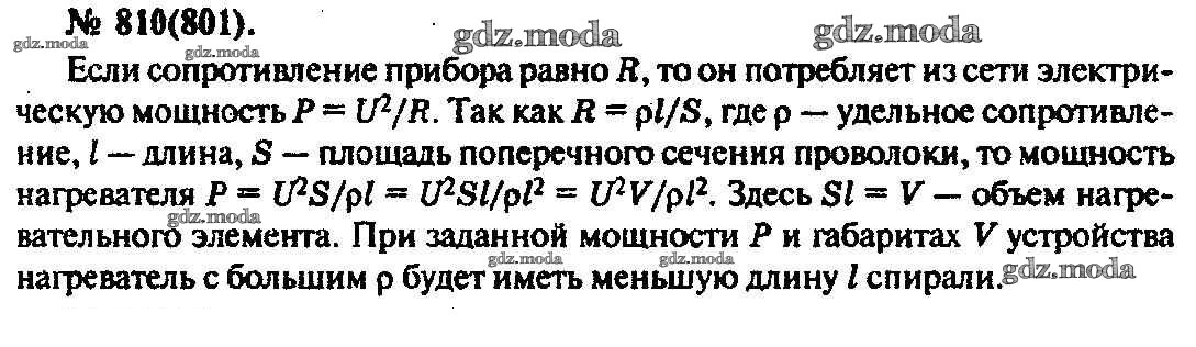 ОТВЕТ на задание № 810 Задачник по Физике 10-11 класс Рымкевич УМК