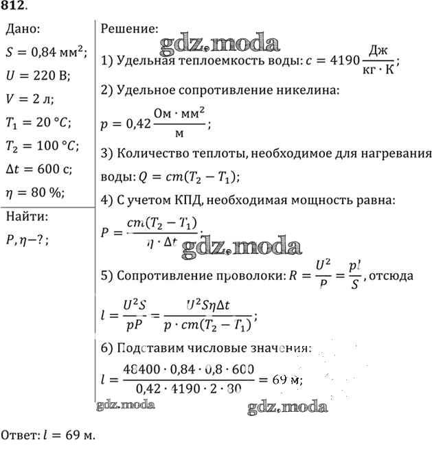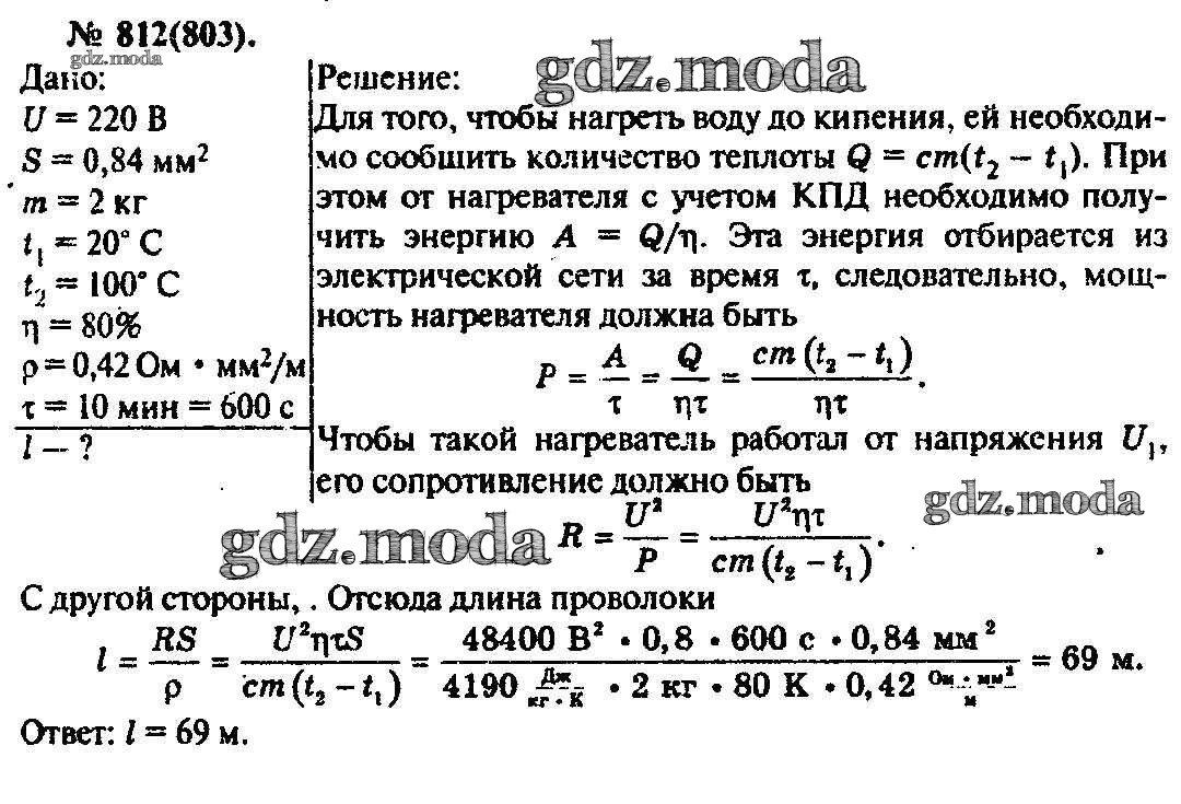 ОТВЕТ на задание № 812 Задачник по Физике 10-11 класс Рымкевич УМК