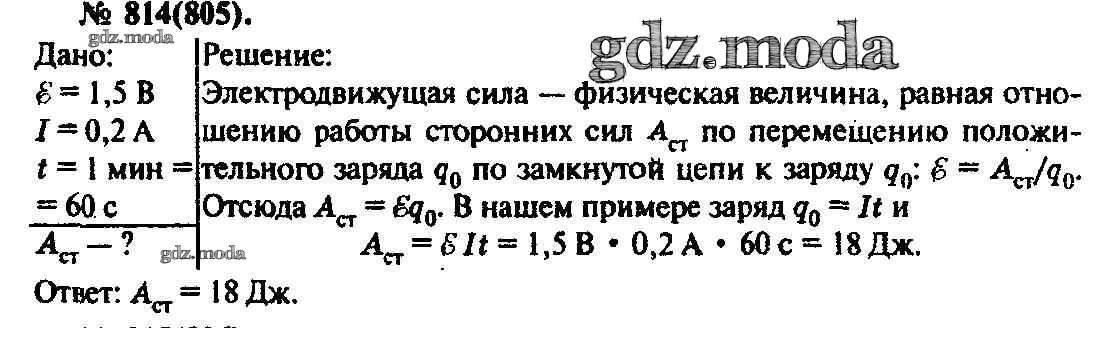 ОТВЕТ на задание № 814 Задачник по Физике 10-11 класс Рымкевич УМК