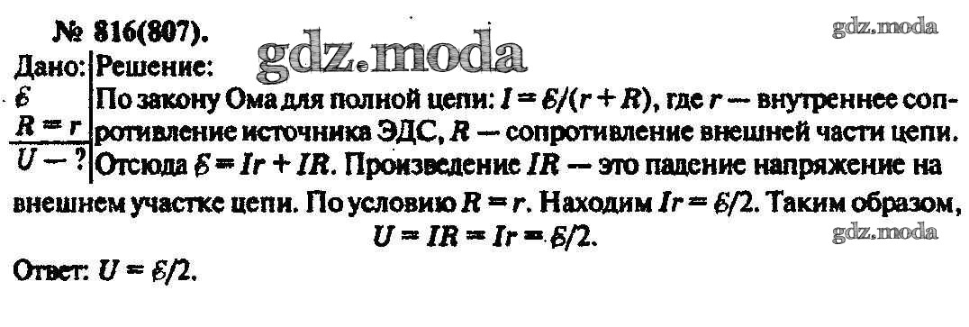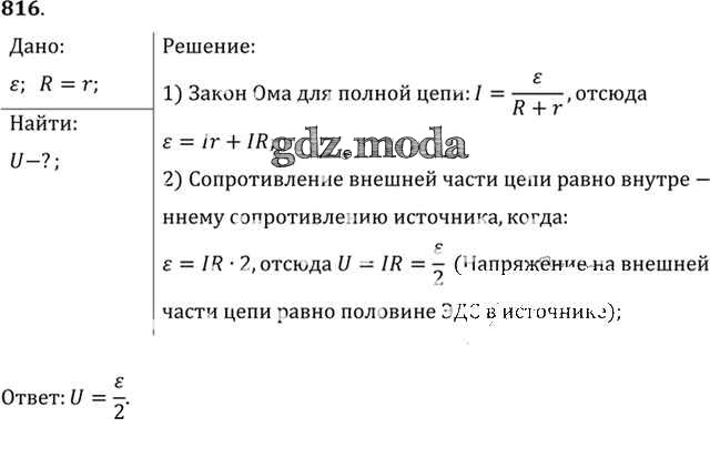 ОТВЕТ на задание № 816 Задачник по Физике 10-11 класс Рымкевич УМК
