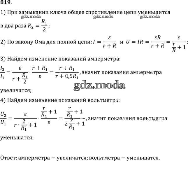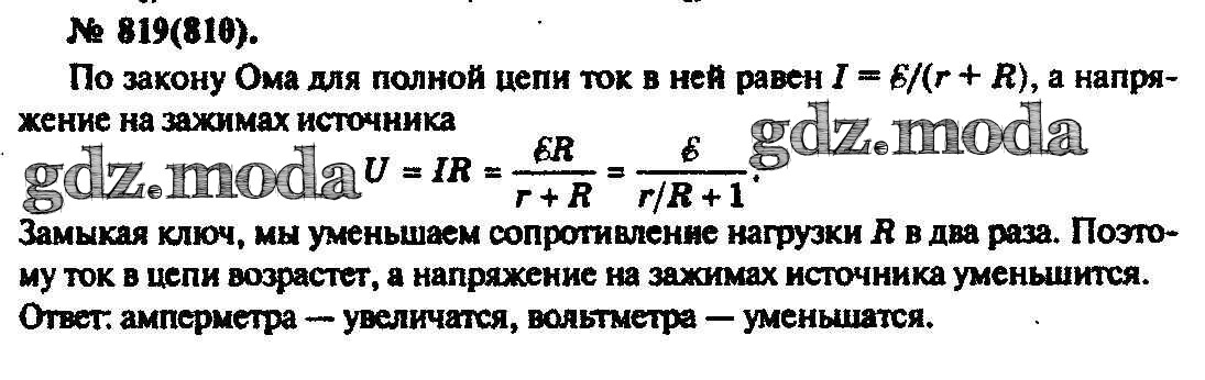 ОТВЕТ на задание № 819 Задачник по Физике 10-11 класс Рымкевич УМК