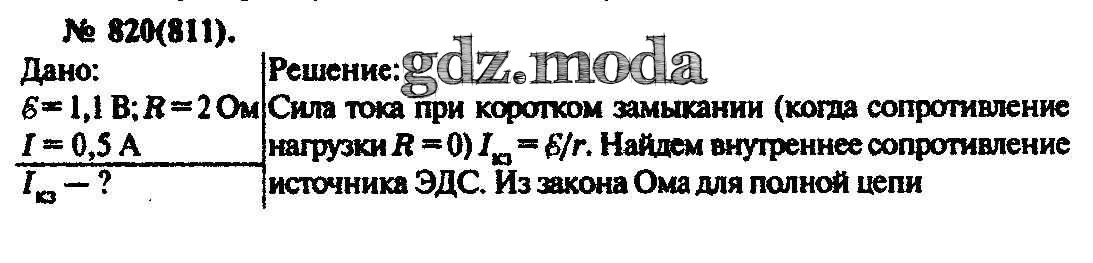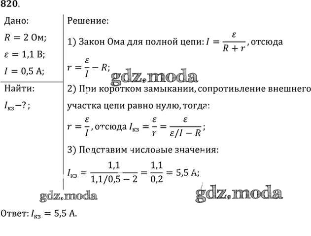 ОТВЕТ на задание № 820 Задачник по Физике 10-11 класс Рымкевич УМК