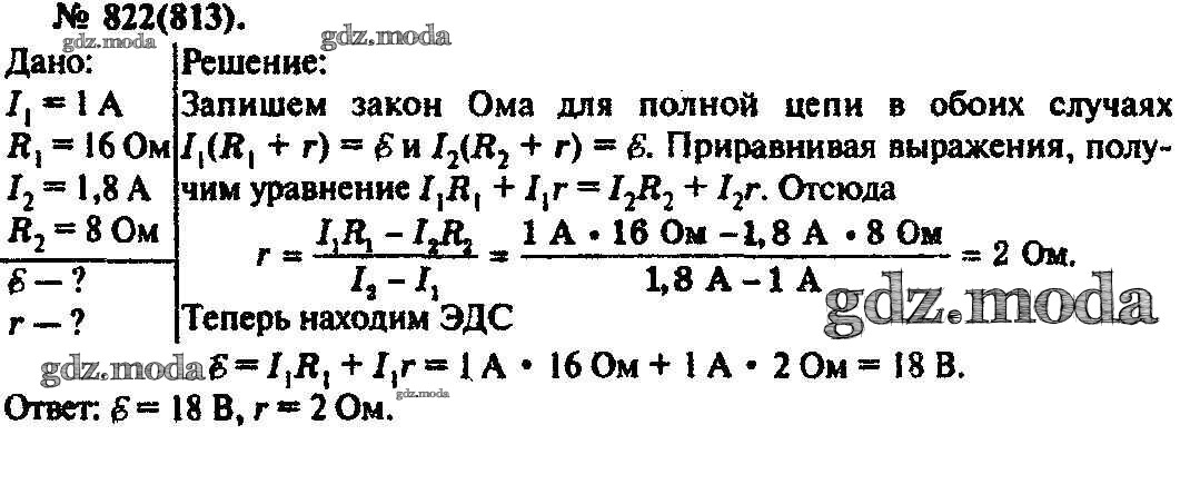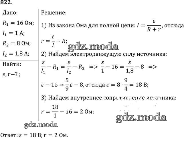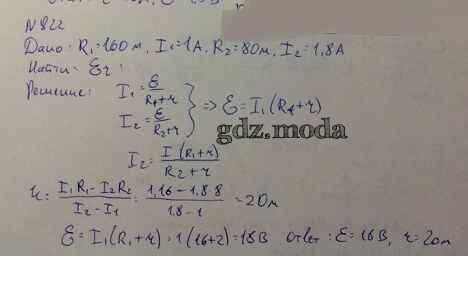 ОТВЕТ на задание № 822 Задачник по Физике 10-11 класс Рымкевич УМК