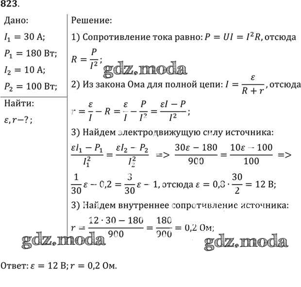 ОТВЕТ на задание № 823 Задачник по Физике 10-11 класс Рымкевич УМК