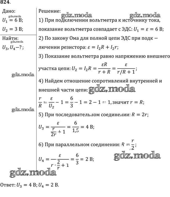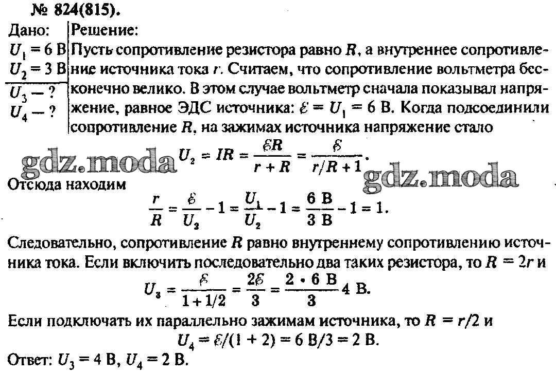 ОТВЕТ на задание № 824 Задачник по Физике 10-11 класс Рымкевич УМК