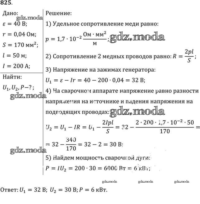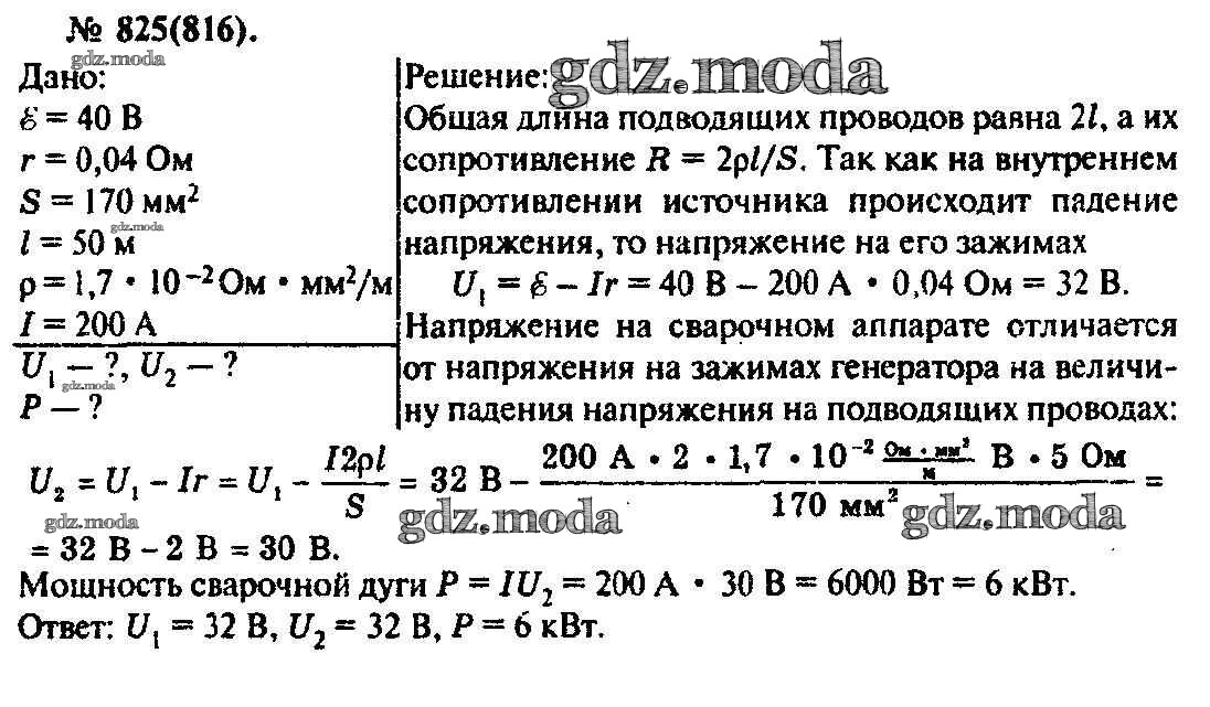ОТВЕТ на задание № 825 Задачник по Физике 10-11 класс Рымкевич УМК