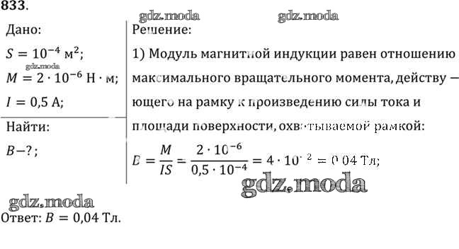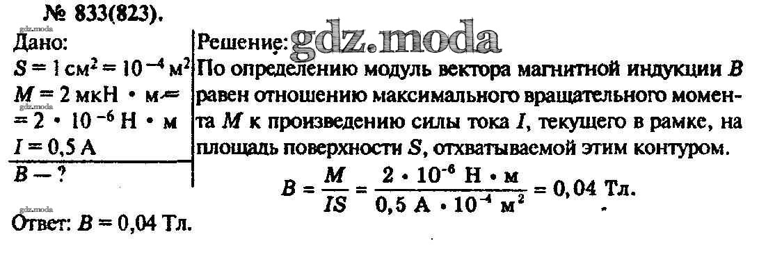 ОТВЕТ на задание № 833 Задачник по Физике 10-11 класс Рымкевич УМК