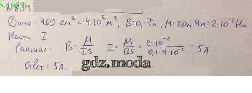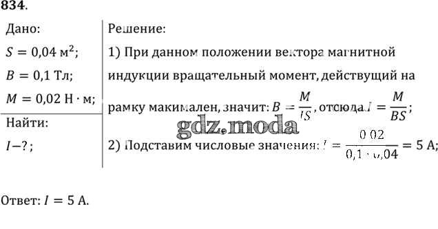 ОТВЕТ на задание № 834 Задачник по Физике 10-11 класс Рымкевич УМК