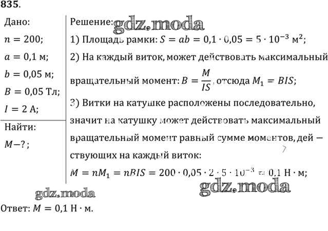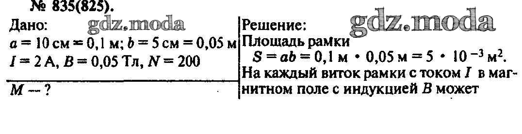 ОТВЕТ на задание № 835 Задачник по Физике 10-11 класс Рымкевич УМК