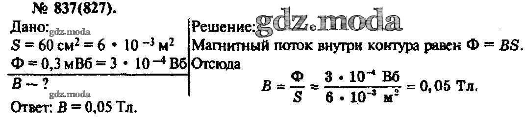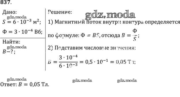 ОТВЕТ на задание № 837 Задачник по Физике 10-11 класс Рымкевич УМК