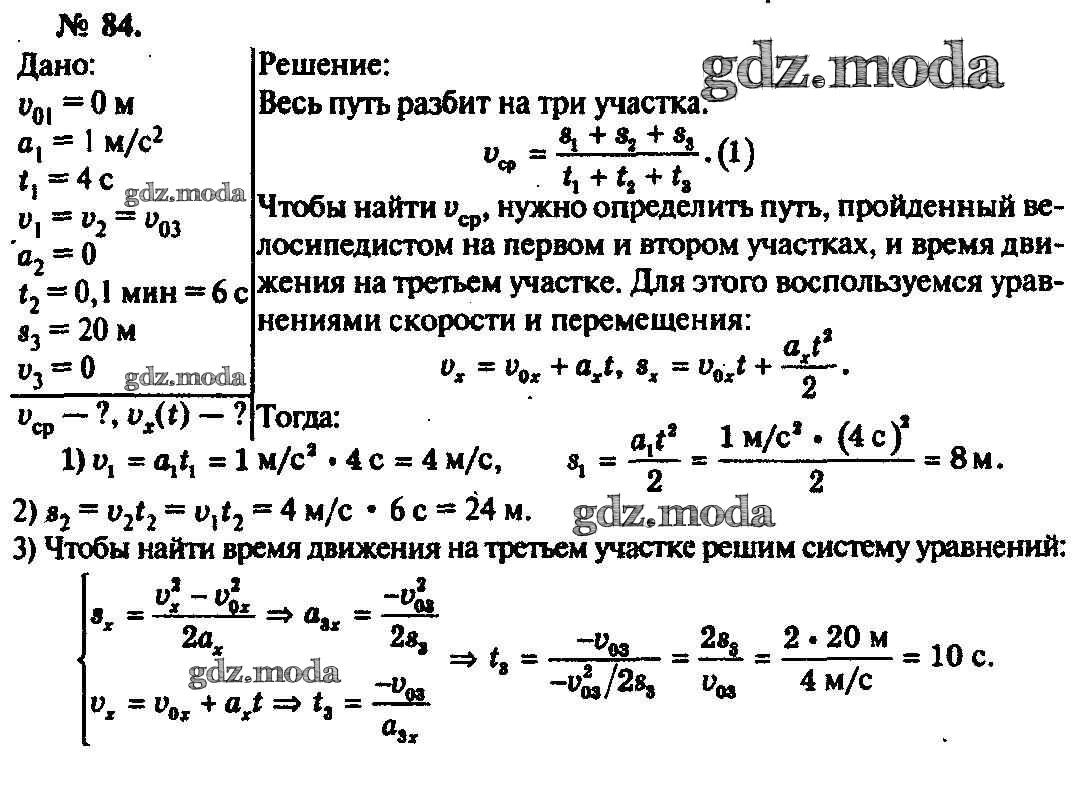 ОТВЕТ на задание № 84 Задачник по Физике 10-11 класс Рымкевич УМК