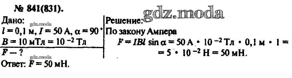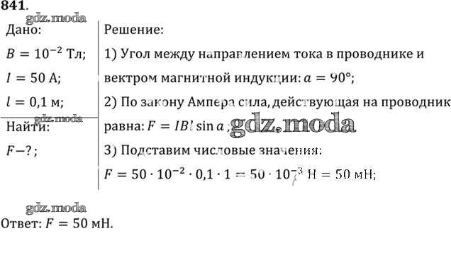 ОТВЕТ на задание № 841 Задачник по Физике 10-11 класс Рымкевич УМК