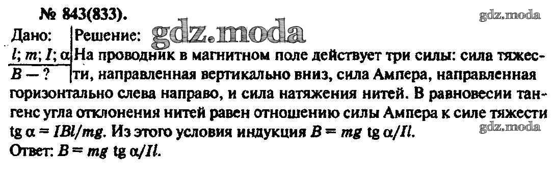 ОТВЕТ на задание № 843 Задачник по Физике 10-11 класс Рымкевич УМК