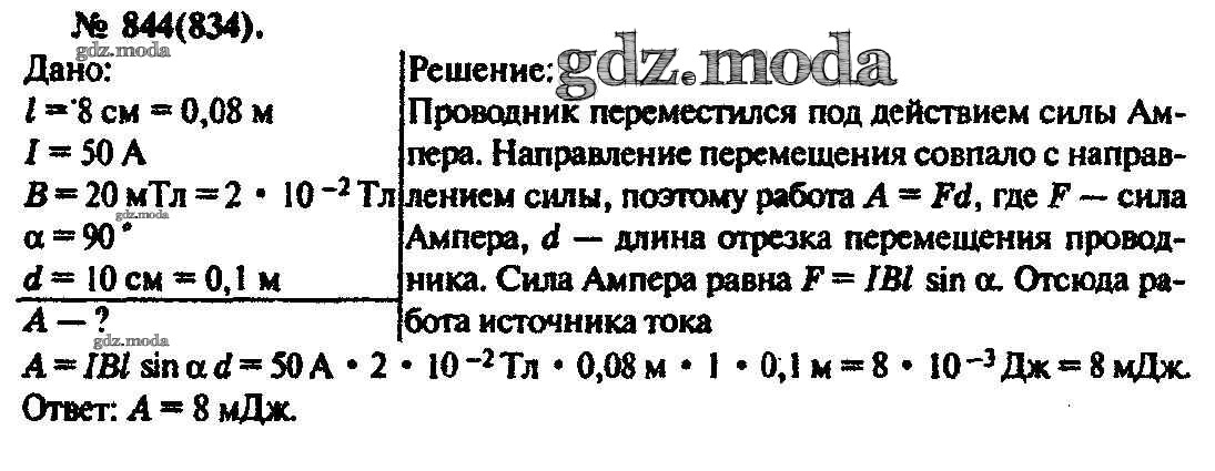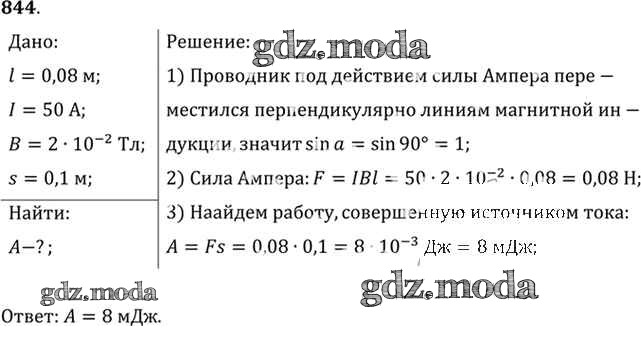 ОТВЕТ на задание № 844 Задачник по Физике 10-11 класс Рымкевич УМК
