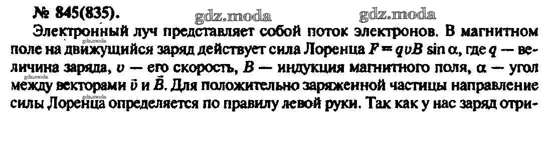 ОТВЕТ на задание № 845 Задачник по Физике 10-11 класс Рымкевич УМК