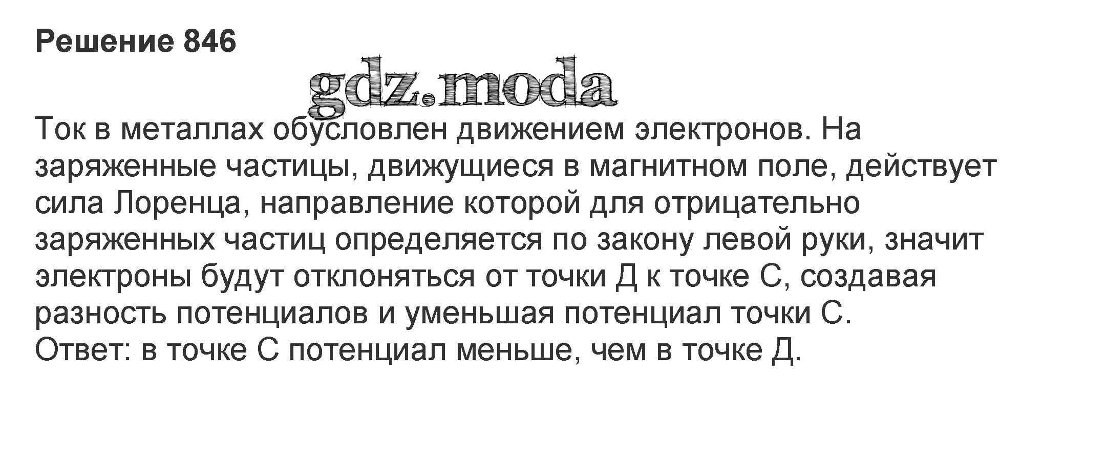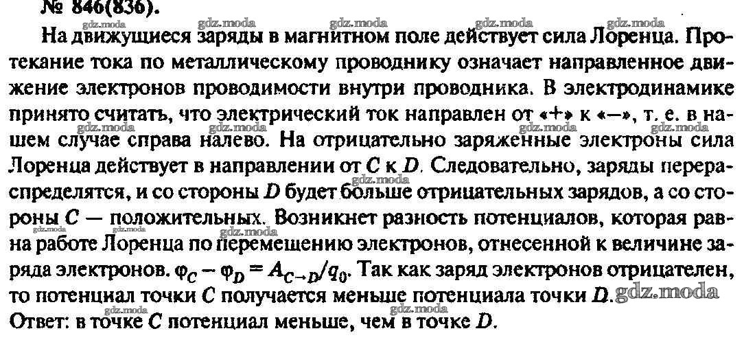 ОТВЕТ на задание № 846 Задачник по Физике 10-11 класс Рымкевич УМК