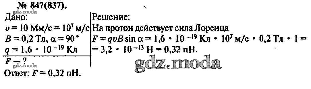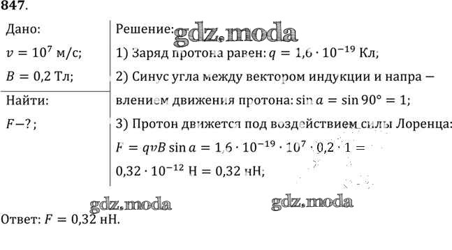 ОТВЕТ на задание № 847 Задачник по Физике 10-11 класс Рымкевич УМК