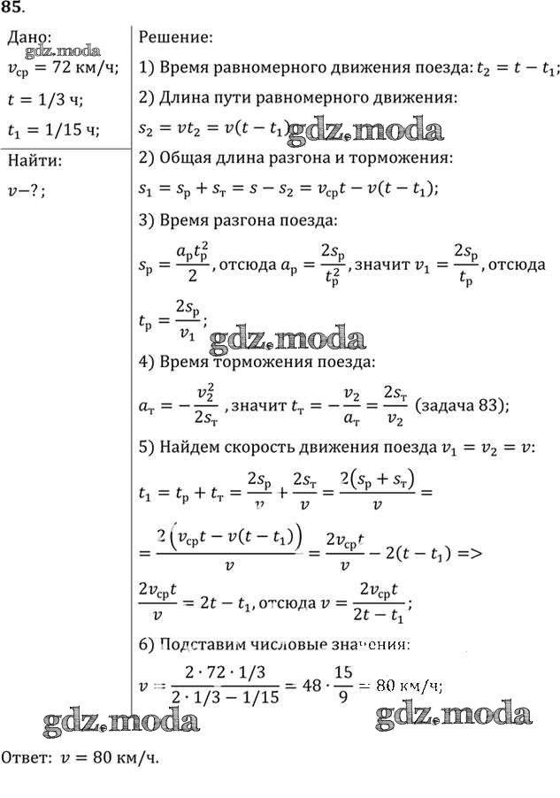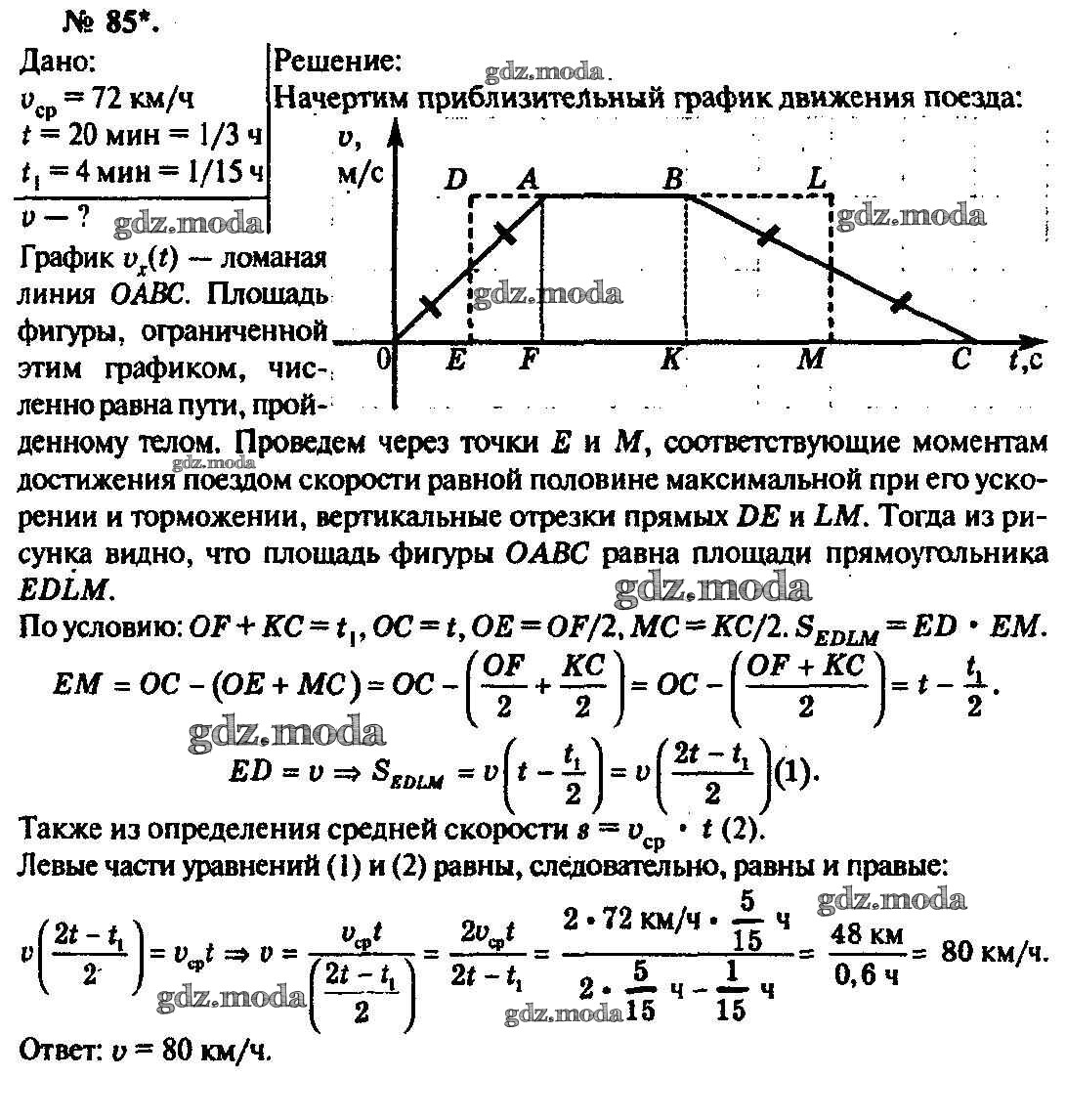 ОТВЕТ на задание № 85 Задачник по Физике 10-11 класс Рымкевич УМК