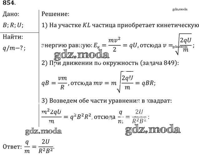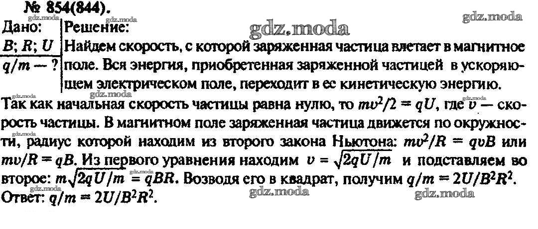 ОТВЕТ на задание № 854 Задачник по Физике 10-11 класс Рымкевич УМК