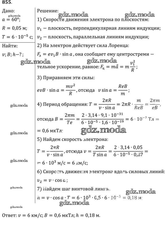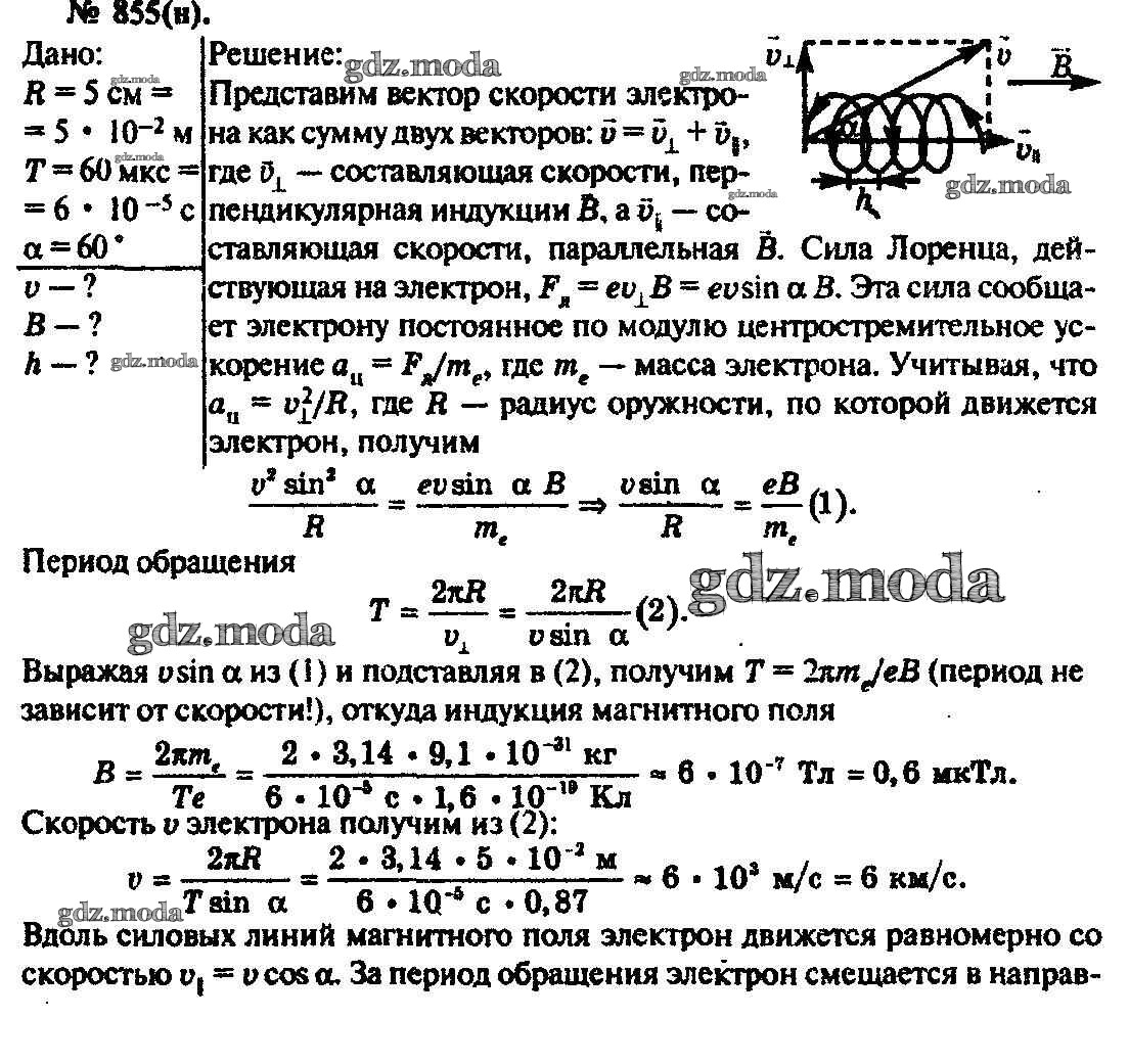 ОТВЕТ на задание № 855 Задачник по Физике 10-11 класс Рымкевич УМК