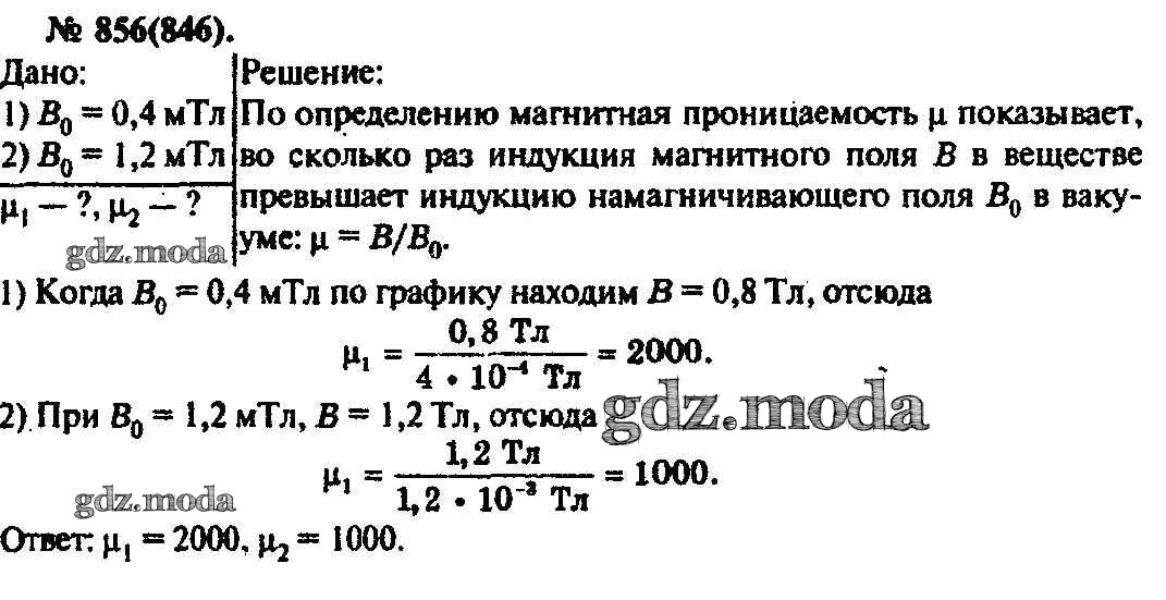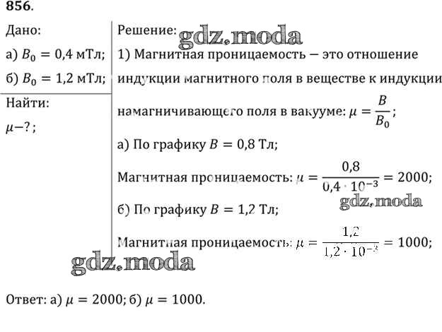 ОТВЕТ на задание № 856 Задачник по Физике 10-11 класс Рымкевич УМК