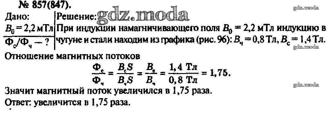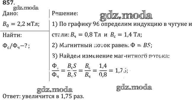 ОТВЕТ на задание № 857 Задачник по Физике 10-11 класс Рымкевич УМК