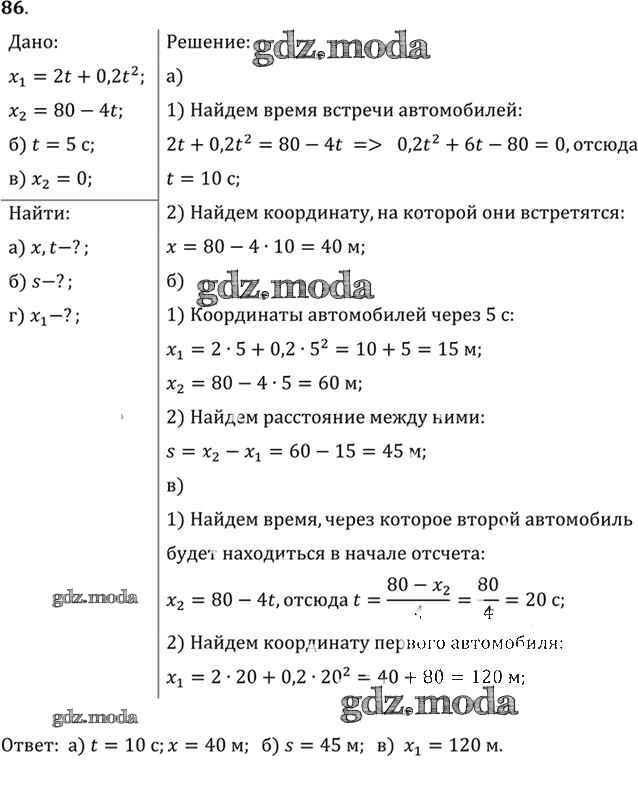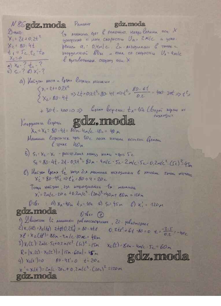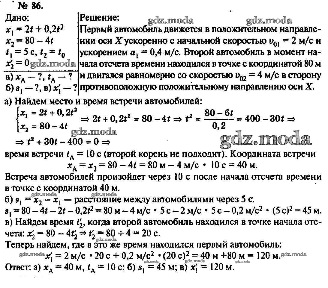 ОТВЕТ на задание № 86 Задачник по Физике 10-11 класс Рымкевич УМК