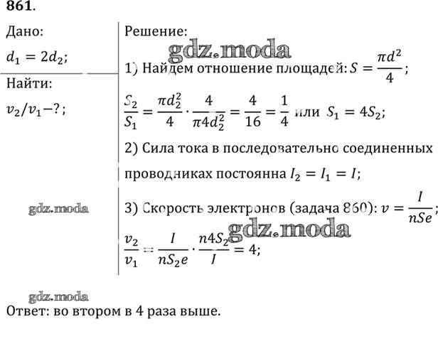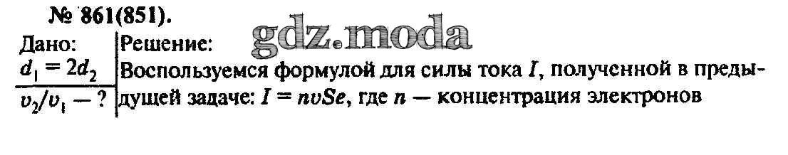 ОТВЕТ на задание № 861 Задачник по Физике 10-11 класс Рымкевич УМК