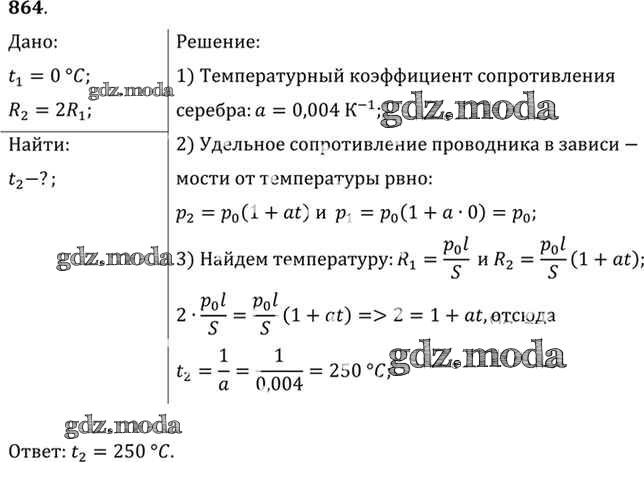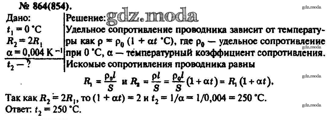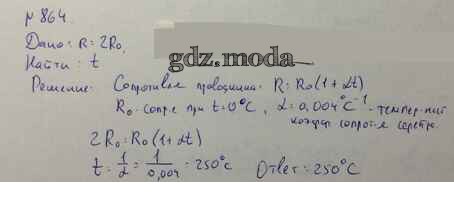 ОТВЕТ на задание № 864 Задачник по Физике 10-11 класс Рымкевич УМК