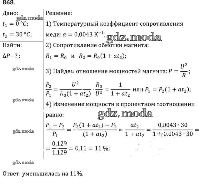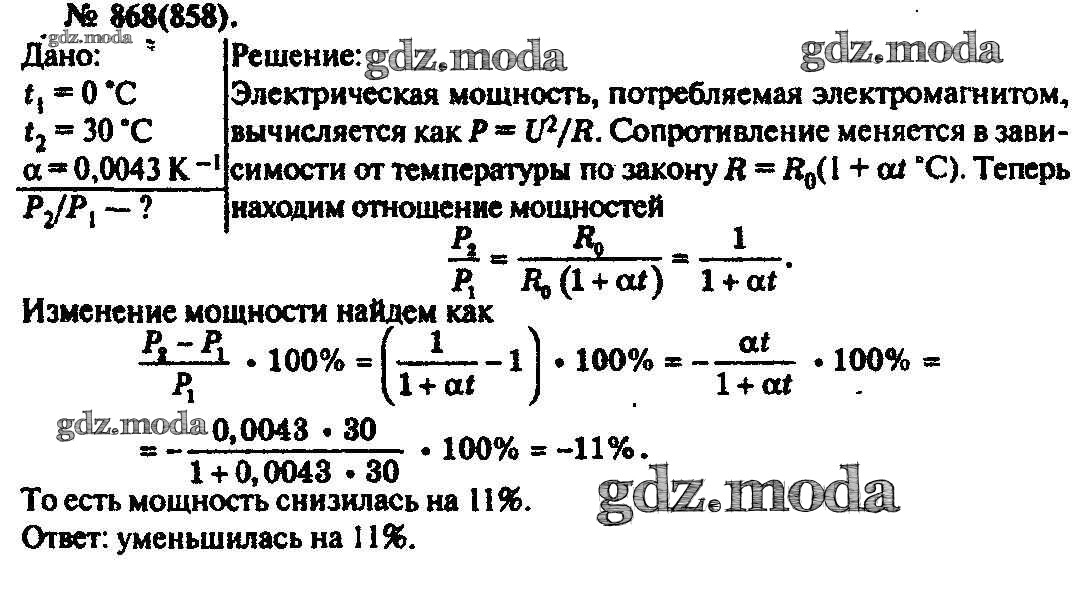 ОТВЕТ на задание № 868 Задачник по Физике 10-11 класс Рымкевич УМК