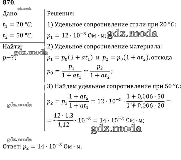 ОТВЕТ на задание № 870 Задачник по Физике 10-11 класс Рымкевич УМК