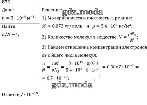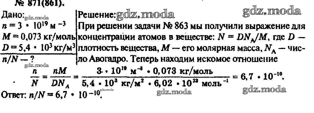 ОТВЕТ на задание № 871 Задачник по Физике 10-11 класс Рымкевич УМК