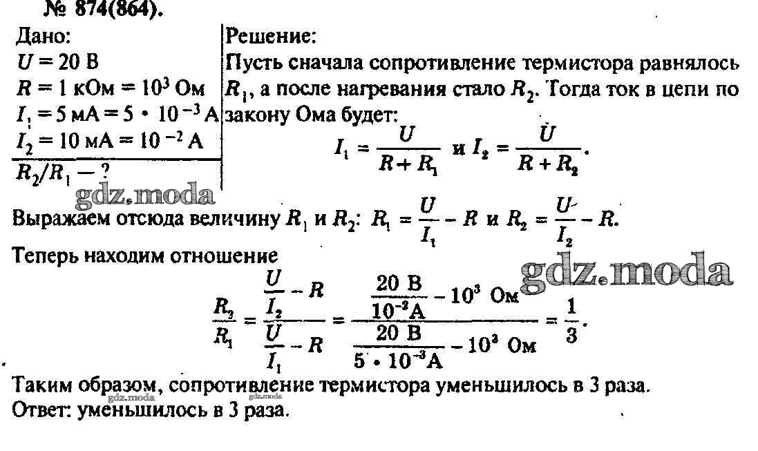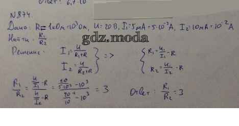ОТВЕТ на задание № 874 Задачник по Физике 10-11 класс Рымкевич УМК
