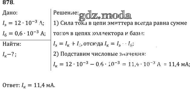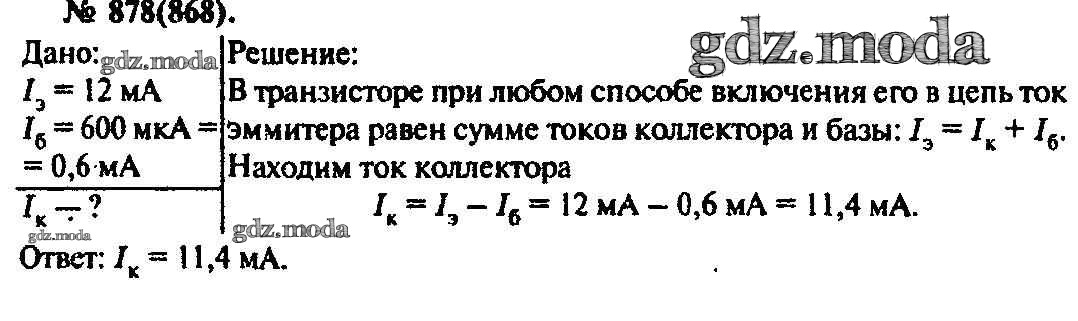ОТВЕТ на задание № 878 Задачник по Физике 10-11 класс Рымкевич УМК