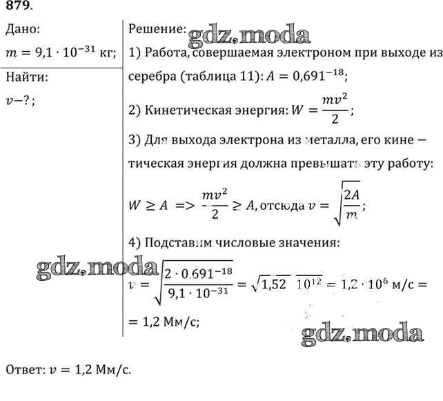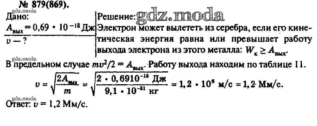 ОТВЕТ на задание № 879 Задачник по Физике 10-11 класс Рымкевич УМК