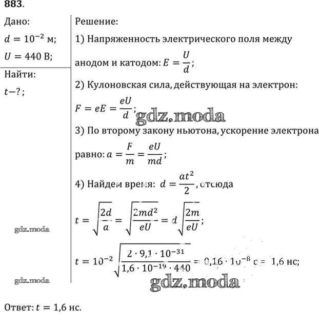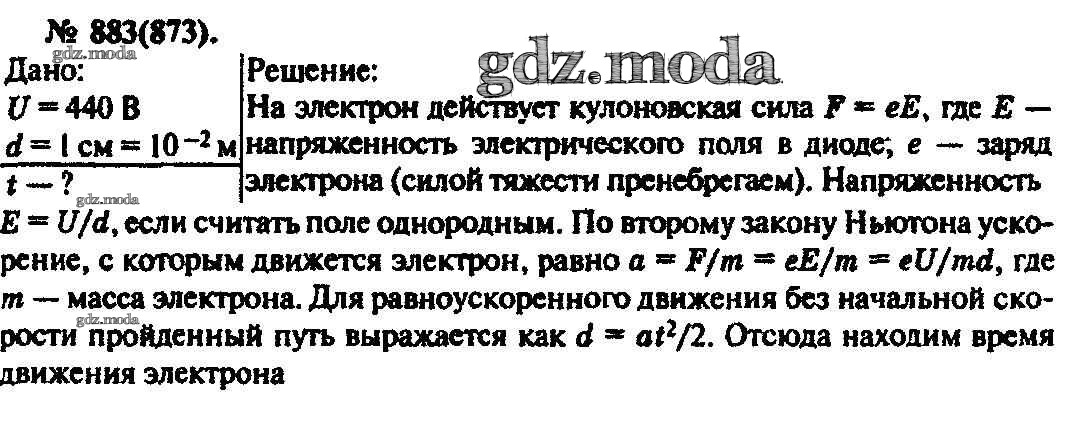 ОТВЕТ на задание № 883 Задачник по Физике 10-11 класс Рымкевич УМК