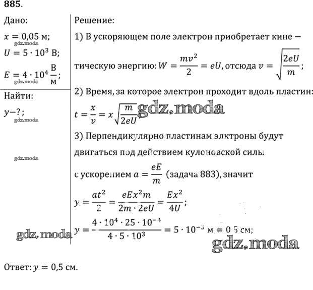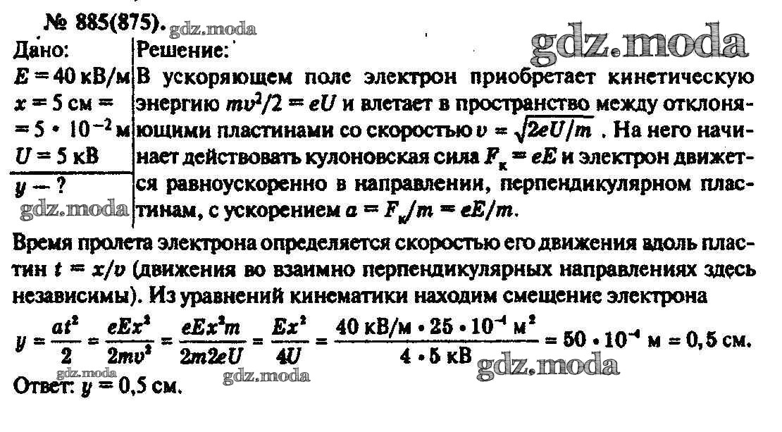 ОТВЕТ на задание № 885 Задачник по Физике 10-11 класс Рымкевич УМК
