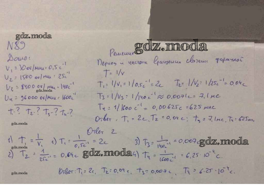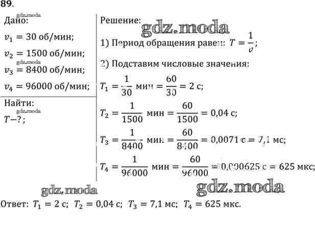ОТВЕТ на задание № 89 Задачник по Физике 10-11 класс Рымкевич УМК