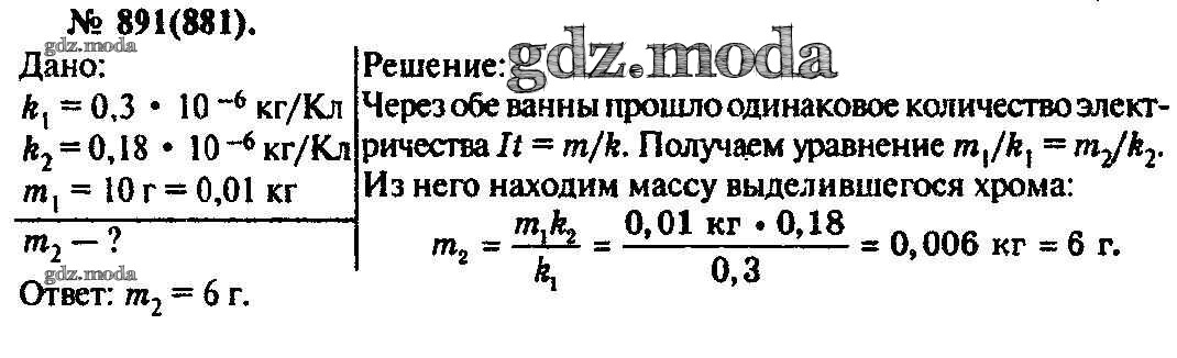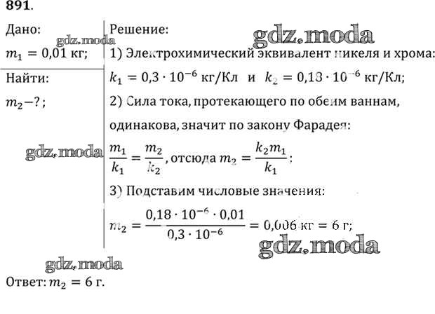 ОТВЕТ на задание № 891 Задачник по Физике 10-11 класс Рымкевич УМК