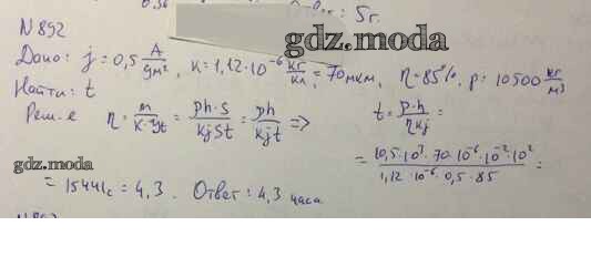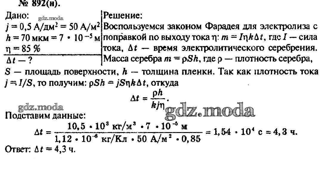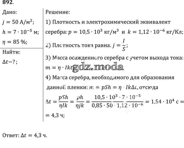 ОТВЕТ на задание № 892 Задачник по Физике 10-11 класс Рымкевич УМК