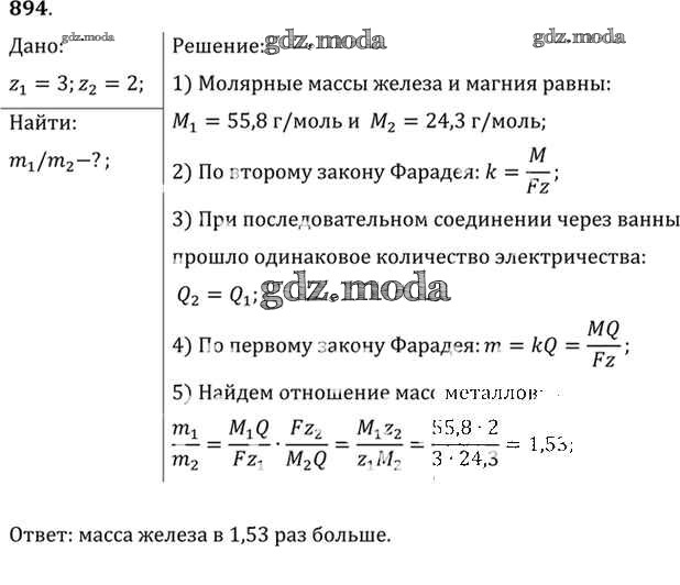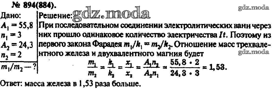 ОТВЕТ на задание № 894 Задачник по Физике 10-11 класс Рымкевич УМК