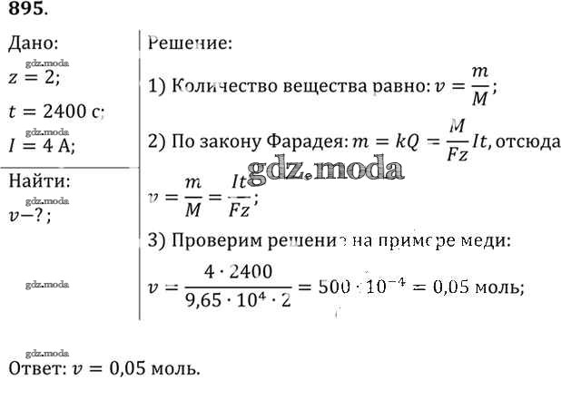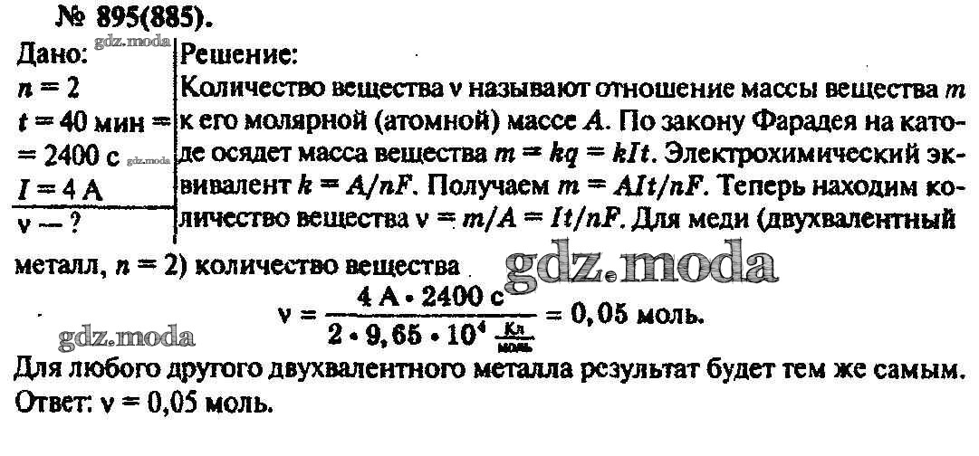 ОТВЕТ на задание № 895 Задачник по Физике 10-11 класс Рымкевич УМК