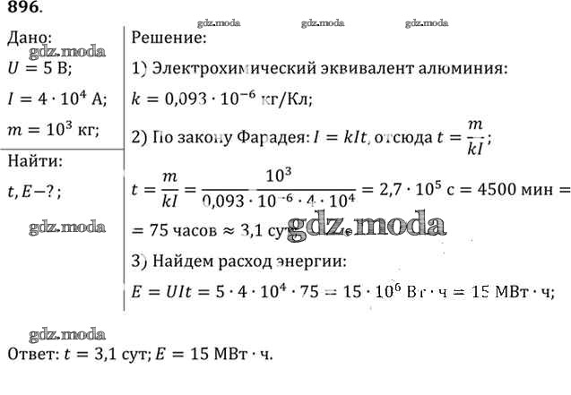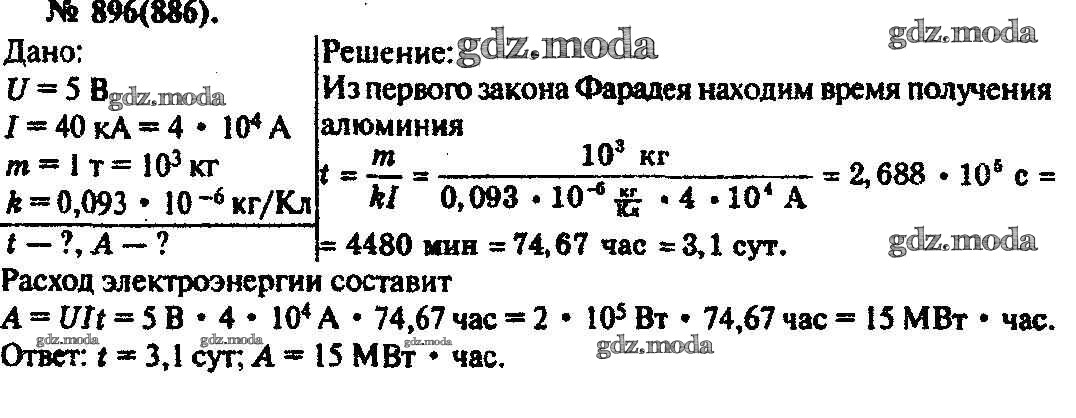 ОТВЕТ на задание № 896 Задачник по Физике 10-11 класс Рымкевич УМК