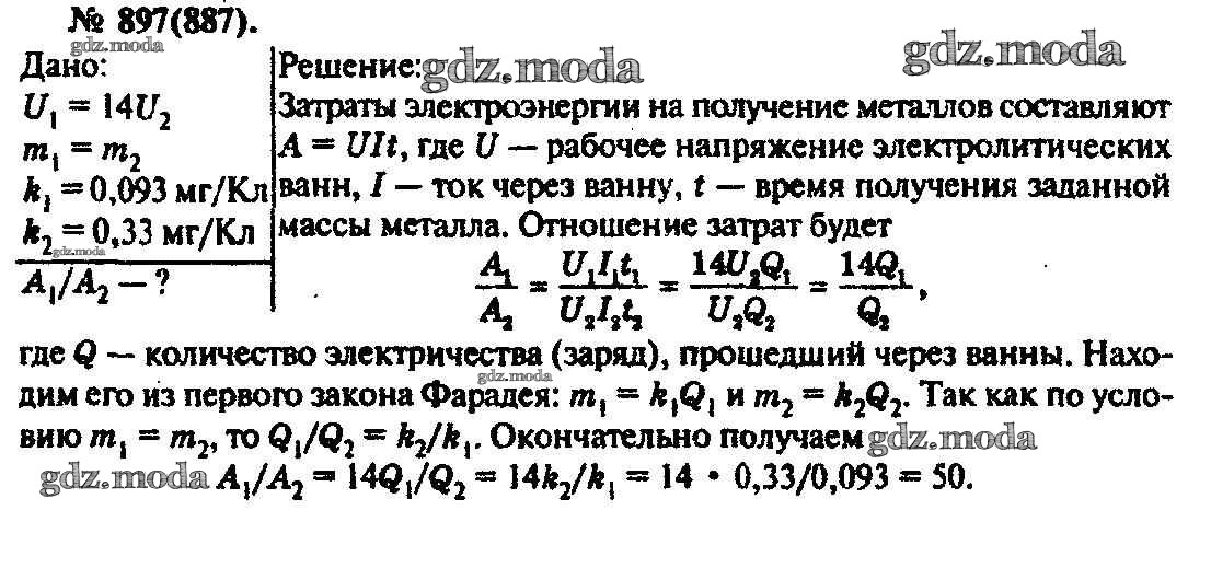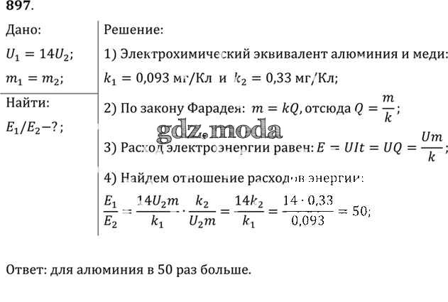 ОТВЕТ на задание № 897 Задачник по Физике 10-11 класс Рымкевич УМК