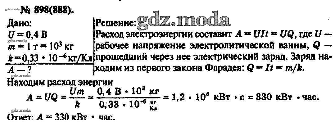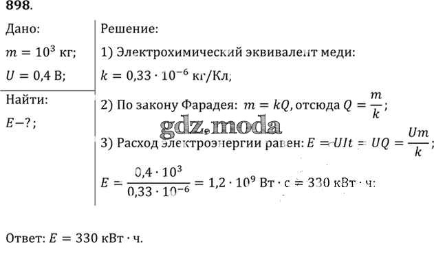 ОТВЕТ на задание № 898 Задачник по Физике 10-11 класс Рымкевич УМК