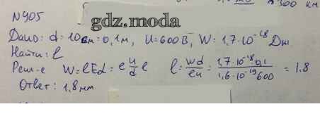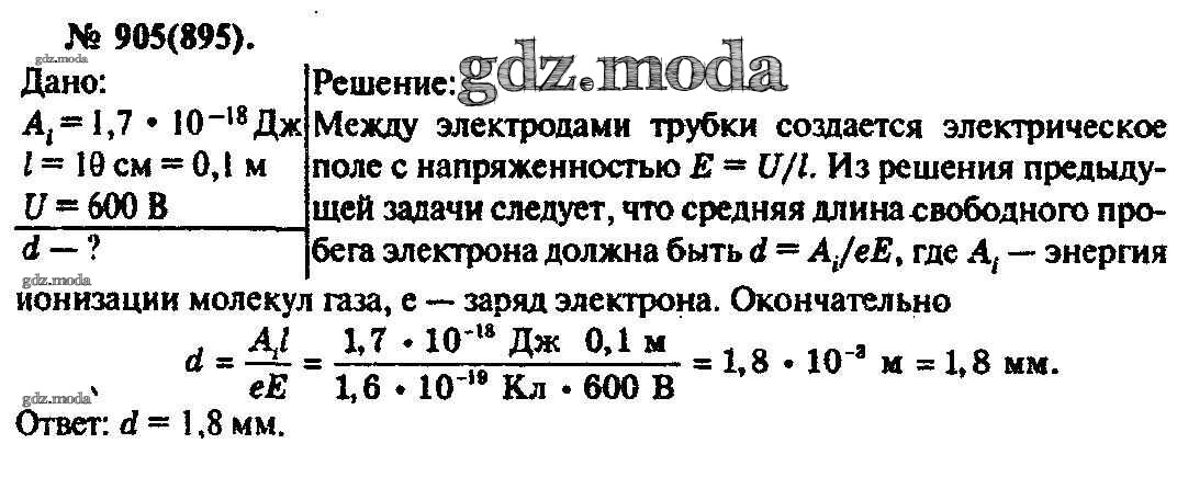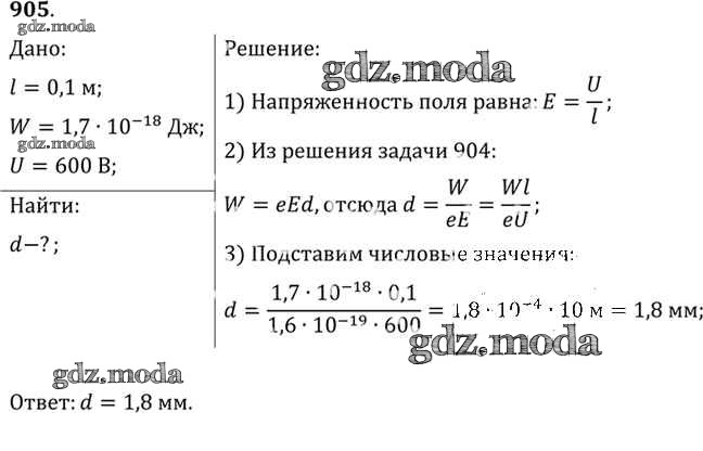 ОТВЕТ на задание № 905 Задачник по Физике 10-11 класс Рымкевич УМК