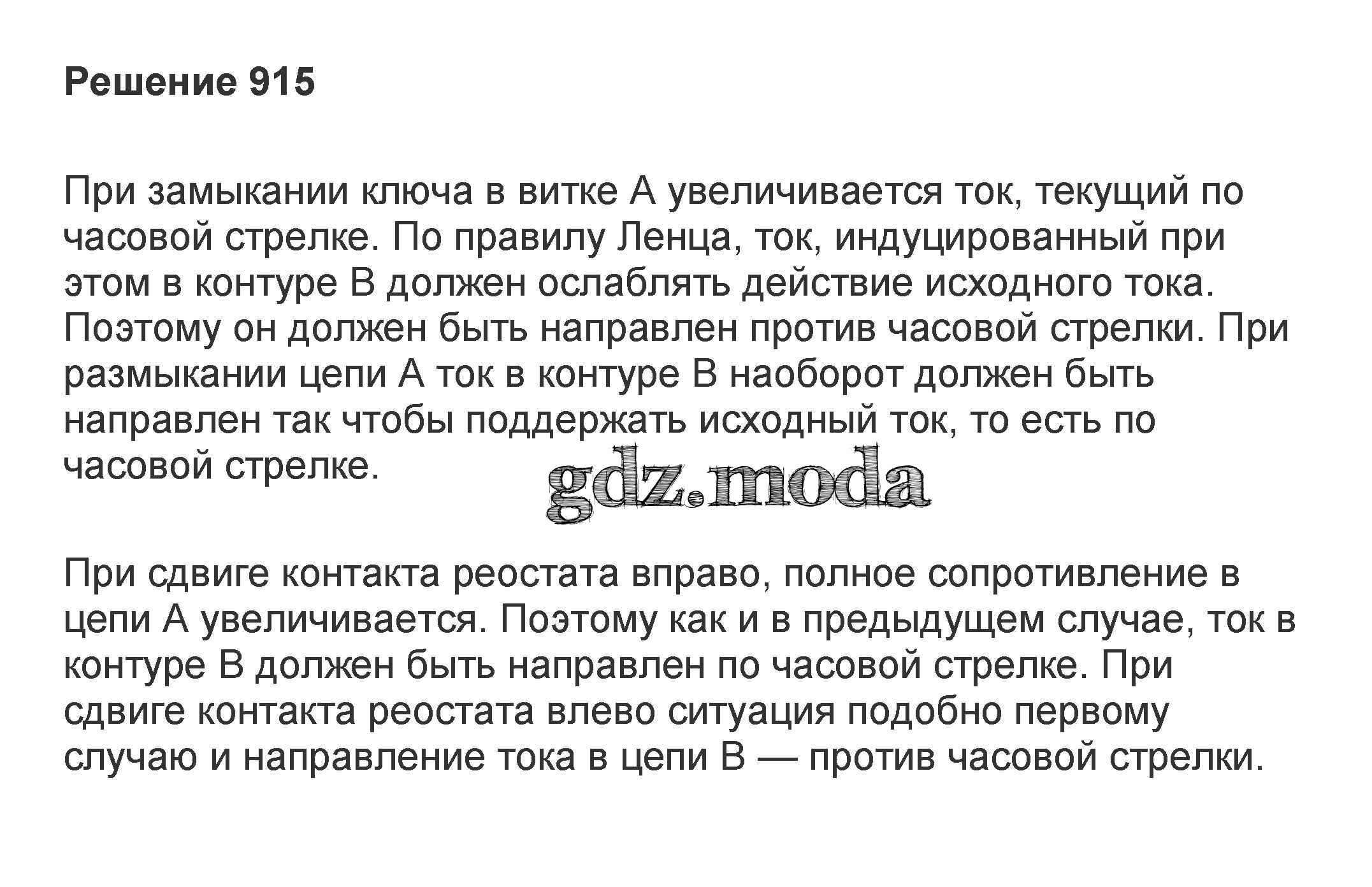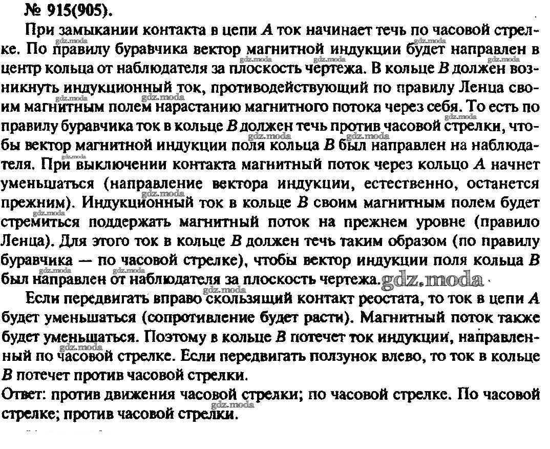 ОТВЕТ на задание № 915 Задачник по Физике 10-11 класс Рымкевич УМК