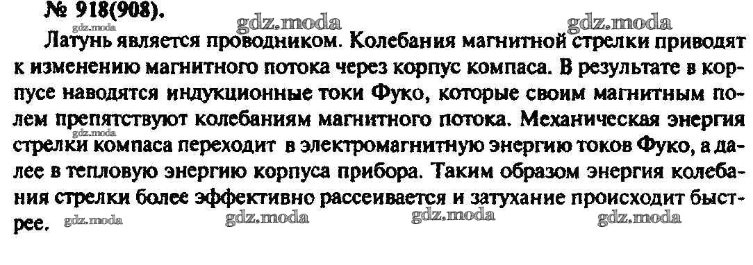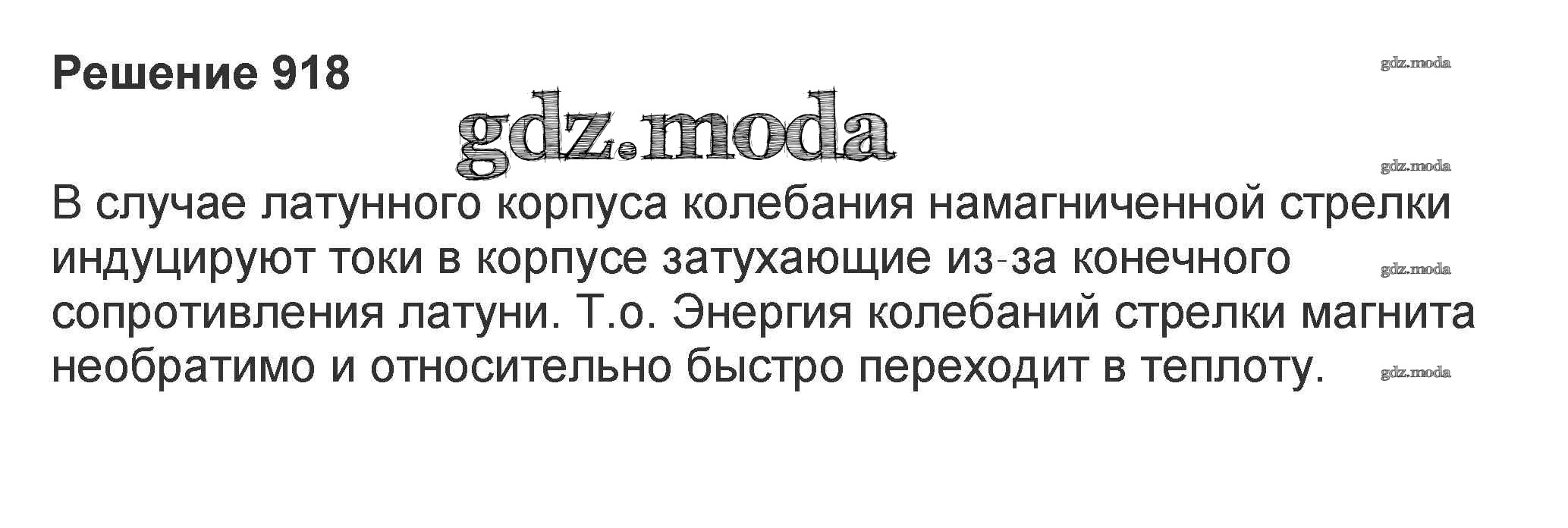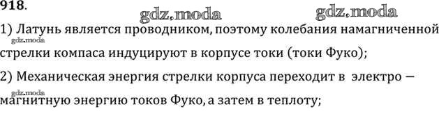 ОТВЕТ на задание № 918 Задачник по Физике 10-11 класс Рымкевич УМК